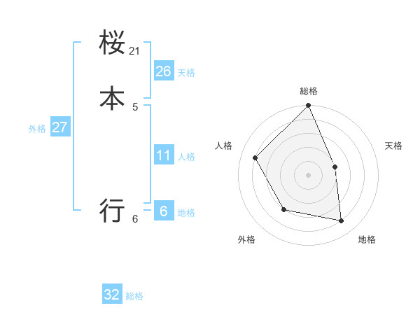 桜本 行さんの総格は32画の5点!