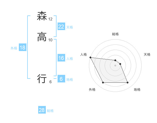 森高 行さんの総格は28画の1点!