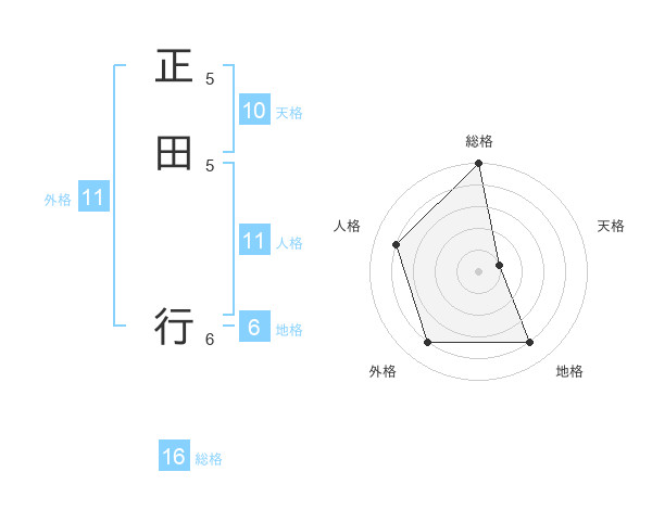 正田 行さんの総格は16画の5点!