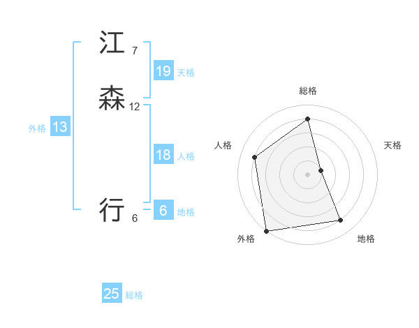 江森 行さんの総格は25画の4点!