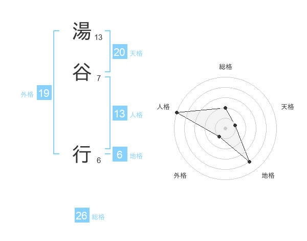 湯谷 行さんの総格は26画の2点!