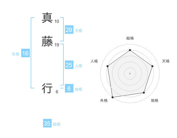 真藤 行さんの総格は35画の4点!