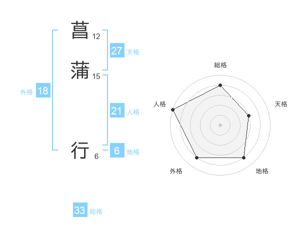 菖蒲 行さんの総格は33画の4点!
