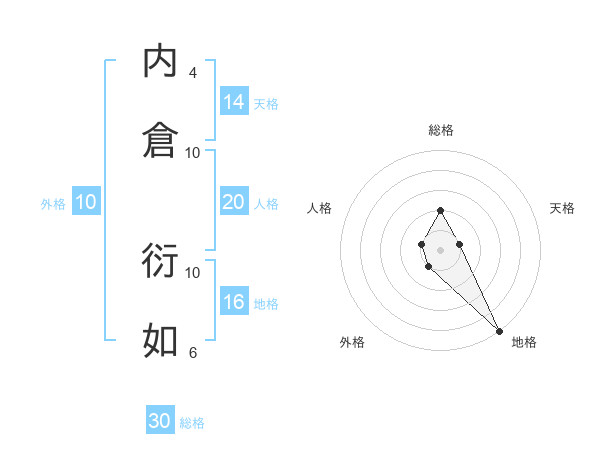 内倉 衍如さんを姓名の画数から五運を鑑定