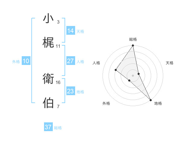 小梶 衛伯さんの総格は37画の5点!