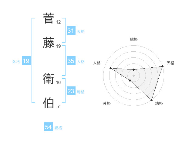 菅藤 衛伯さんを姓名の画数から五運を鑑定