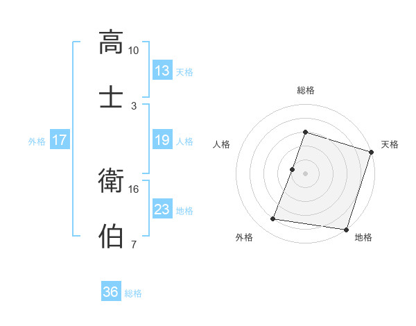 高士 衛伯さんの天格は13画の5点!