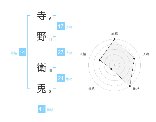 寺野 衛兎さんの天格は17画の4点!