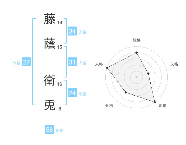 藤蔭 衛兎さんの総格は58画の4点!