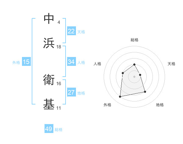 中浜 衛基さんを姓名の画数から五運を鑑定