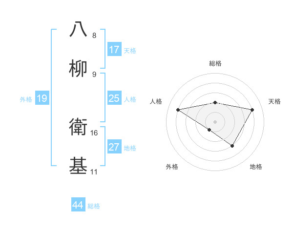 八柳 衛基さんを姓名の画数から五運を鑑定