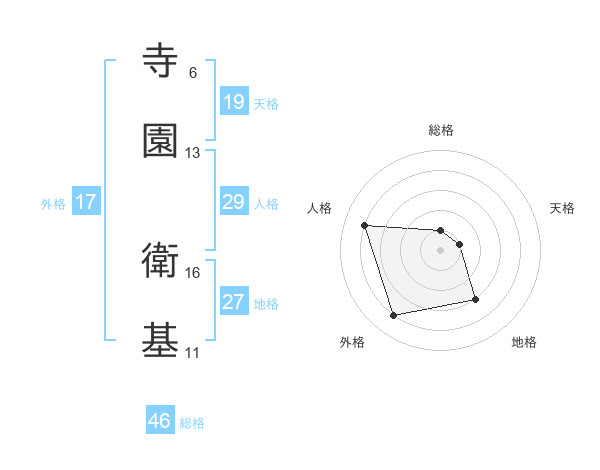 寺園 衛基さんを姓名の画数から五運を鑑定