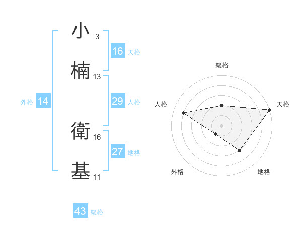 小楠 衛基さんを姓名の画数から五運を鑑定