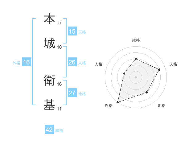 本城 衛基さんの総格は42画の3点!