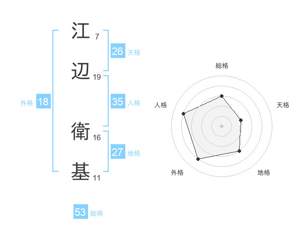 江辺 衛基さんの総格は53画の3点!