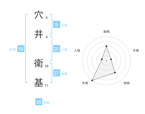 穴井 衛基さんを姓名の画数から五運を鑑定