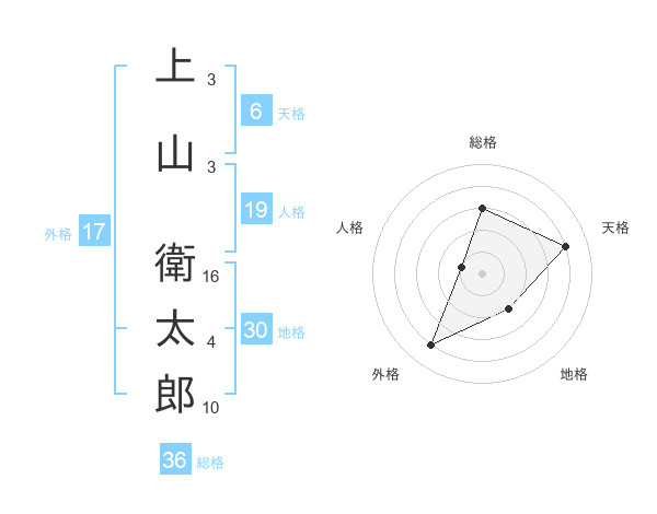 上山 衛太郎さんを姓名の画数から五運を鑑定