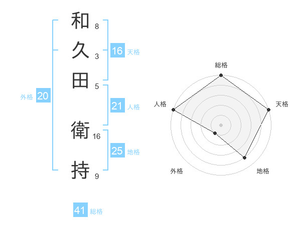 和久田 衛持さんを姓名の画数から五運を鑑定
