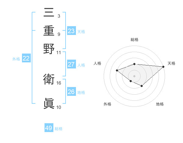 三重野 衛眞さんを姓名の画数から五運を鑑定