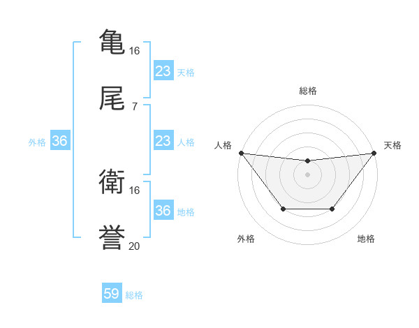 亀尾 衛誉さんを姓名の画数から五運を鑑定