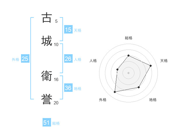 古城 衛誉さんの総格は51画の3点!