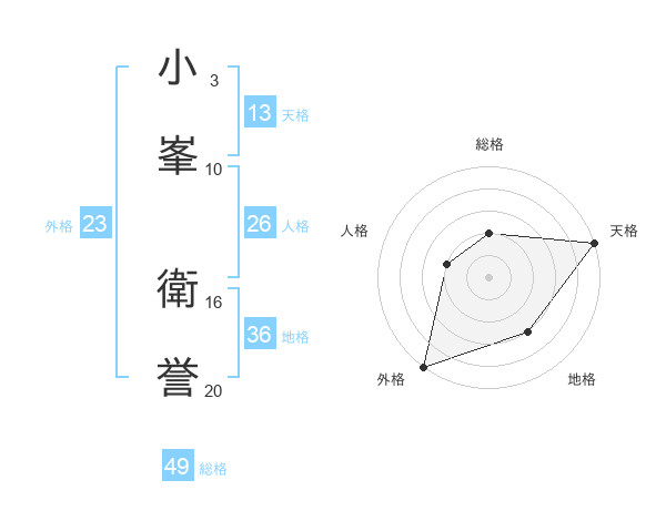 小峯 衛誉さんの総格は49画の2点!