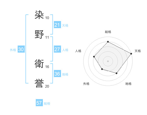 染野 衛誉さんの総格は57画の4点!