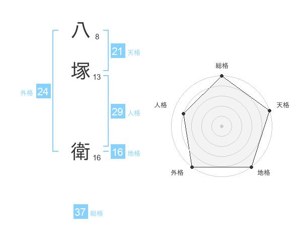 八塚 衛さんの総格は37画の5点!