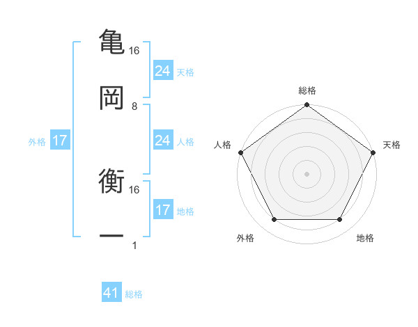 亀岡 衡一さんを姓名の画数から五運を鑑定