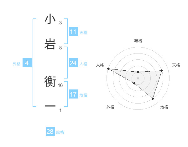 小岩 衡一さんを姓名の画数から五運を鑑定