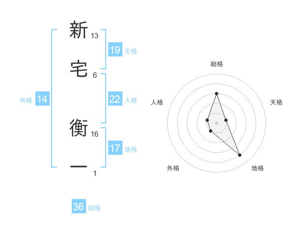 新宅 衡一さんの地格は17画の4点!
