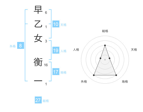 早乙女 衡一さんの総格は27画の3点!