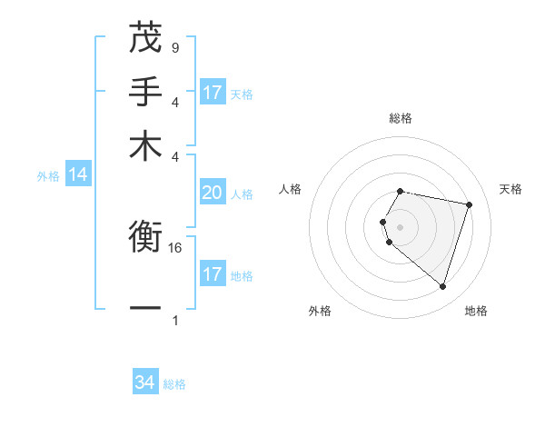 茂手木 衡一さんを姓名の画数から五運を鑑定