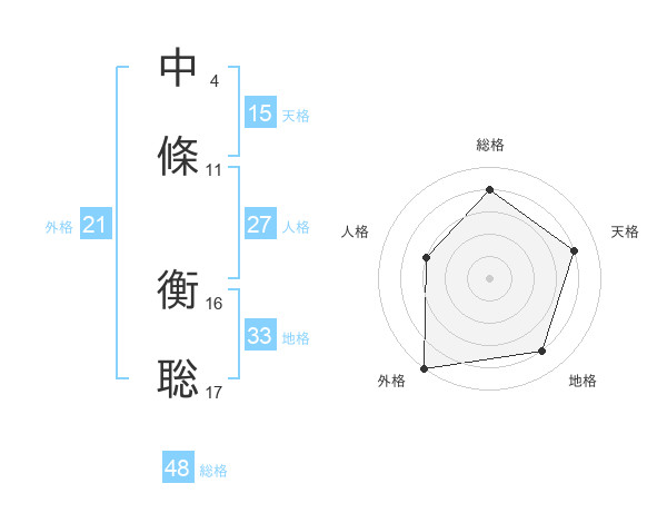 中條 衡聡さんを姓名の画数から五運を鑑定
