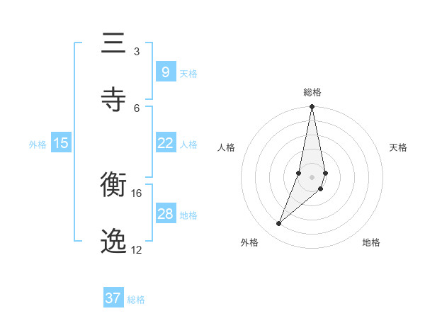 三寺 衡逸さんの総格は37画の5点!