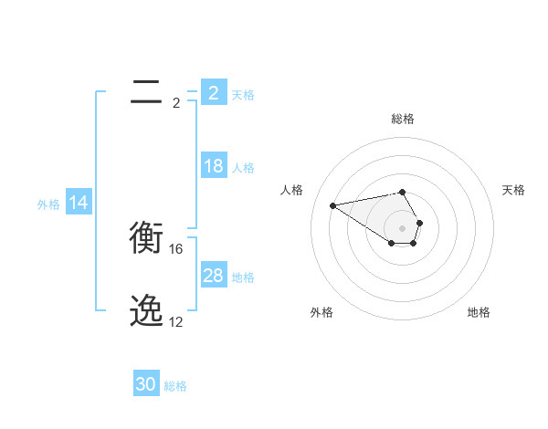 二 衡逸さんの総格は30画の2点!