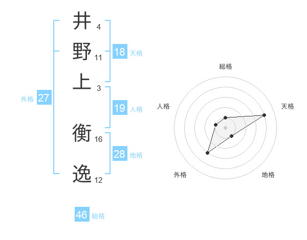 井野上 衡逸さんを姓名の画数から五運を鑑定
