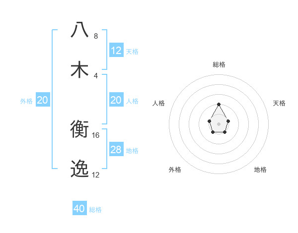 八木 衡逸さんの総格は40画の2点!