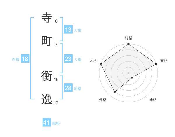 寺町 衡逸さんを姓名の画数から五運を鑑定