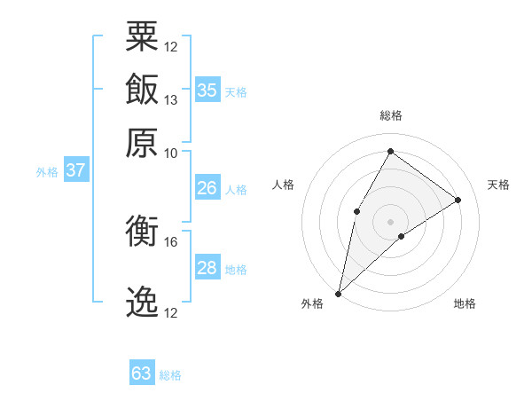 粟飯原 衡逸さんを姓名の画数から五運を鑑定