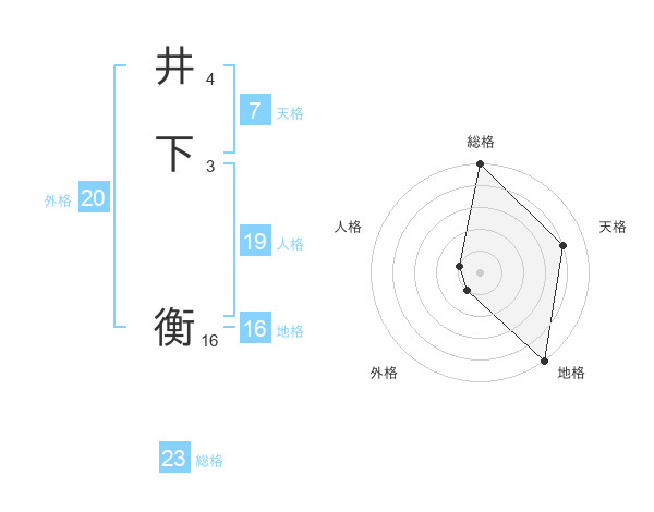 井下 衡さんの総格は23画の5点!
