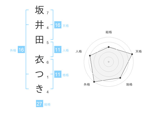 坂井田 衣つきさんの天格は16画の5点!