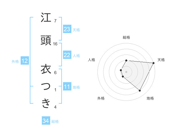 江頭 衣つきさんを姓名の画数から五運を鑑定