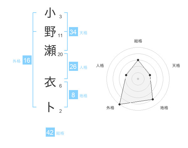 小野瀬 衣トさんを姓名の画数から五運を鑑定