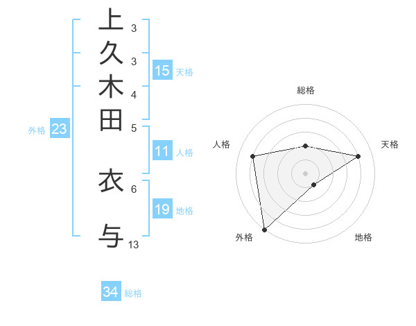 上久木田 衣与さんの外格は23画の5点!