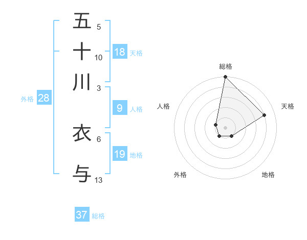 五十川 衣与さんを姓名の画数から五運を鑑定