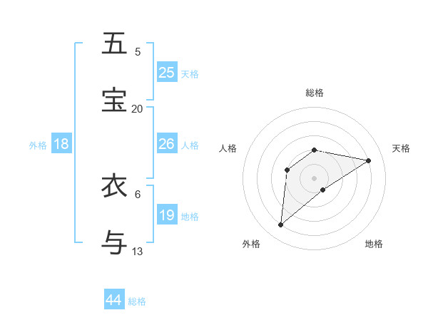 五宝 衣与さんを姓名の画数から五運を鑑定