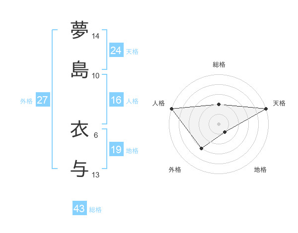 夢島 衣与さんを姓名の画数から五運を鑑定