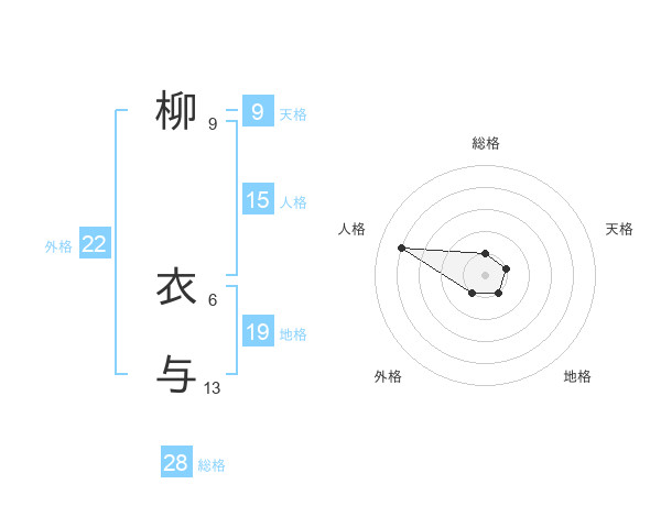 柳 衣与さんの総格は28画の1点!