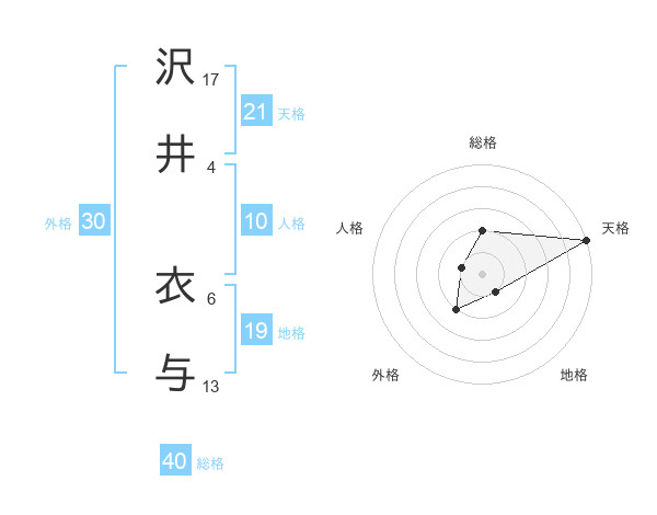 沢井 衣与さんを姓名の画数から五運を鑑定